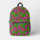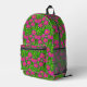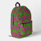 Sac à dos dans un motif de fleurs sauvages roses fuchsia profonds, aux centres jaunes, dans un champ d'herbe verte