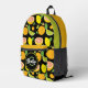 Un sac à dos personnalisé amusant et gourmand qui comprend un motif d'agrumes mignon et le nom de votre enfant. Ce joli sac à dos se démarquera et sera facile à identifier! Il suffit d'ajouter le nom de votre enfant, d'ajouter ce sac à dos à votre panier, puis de le fourrer avec des fournitures scolaires ! Fun Food Fruit Kids Nom Monogramme imprimé sac à dos Sweetsham Food Art | ©Melissa Patton - Artiste/Illustrateur