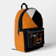 Ajoutez une touche de fantaisie à vos prises de photos (locales et étrangères) avec ce sac à dos, qui comprend la citation humoristique "Les Shutterbugs tirent à l'excitation" sur un arrière - plan géométrique orange, noir et blanc. Design © W.H. Sim. Voir plus sur zazzle.com/wordsofwhimsy