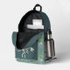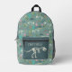 Ce sac à dos personnalisé cool pour enfants présente un motif fossile de dinosaure bleu et vert, avec des plantes jurassiques, des os de squelette Dino, et d'autres illustrations archéologiques, et un t-Rex. Il y a aussi de l'espace pour ajouter votre nom de garçon dans la typographie lunatique. Le cadeau idéal pour tous les passionnés d'histoire ou de dinosaures.