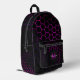 Noir rose chaud neon honeycomb géométrie Monogramme imprimé sac à dos. Personnalisez avec votre initiale et votre nom. Sacs d'école cool unique pour filles. Hot rose rose rose brillant brillant élégant géométrique lignes hexagone noir lignes motif graphique. Design cool gris, noir et rose Accessoires pour femmes audacieuses.