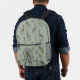 Sur ce sac à dos élégant se trouvent des girafes de gloire dorée dans un motif répétitif sur un fond vert sauge sombre pour plus de pop. Vibes chic et modernes. Peut être personnalisé avec une lettre au milieu dans une sphère verte sur la poche avant