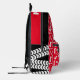 Gras stylisé tracteur graphique et blé personnalisé ajouter votre propre nom répétition sac sac sac à dos à dos à motifs en rouge, blanc et noir brillant. Idéal pour les garçons ou ceux qui aiment l'agriculture et les tracteurs. Customisez avec votre propre choix de nom court partout actuellement lit Ruben et votre nom d'école ou de famille ou seulement votre nom en haut du sac. La couleur arrière - plan peut également être changée si nécessaire, actuellement rouge vif. Art et design originaux par Sarah Trett pour www.mylittleeden.com