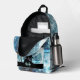 Sac à dos imprimé Monogramme abstrait géométrique bleu brillant de loup hurlant. Personnalisez avec votre initiale et votre nom personnalisés. Sacoche d'accessoires de mode cool pour lui. Créez un sac à dos unique et personnalisé avec une touche personnalisée !