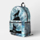 Sac À Dos Imprimé Howling Wolf abstrait aqua bleu noir Monogramme