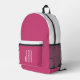 Portez votre équipement avec style avec ce sac à dos classique personnalisé! Ce design présente un arrière - plan rose chaud tendance avec des détails en noir et blanc. Les éléments de conception de poche avant comprennent un modèle pour trois lettres personnalisées monogrammées initiales en blanc sur un arrière - plan rose tendance. Le dessus de la poche et les panneaux latéraux sont en rose & blanc coordonnés. Toutes les couleurs de cette conception peuvent être customisées dans la zone de l'outil de conception. Contactez-moi par message Zazzle avec des demandes de couleur ou des questions personnalisées.