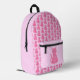 Ce sac à dos impressionnant présente l'image art numérique d'un joli chat rose avec une queue bouclée. Ses yeux sont rose pâle avec des élèves noirs et elle a de longs cils noirs. Elle porte un arc rose dans ses cheveux et un beau collier de perles autour du cou. Le design est parfait pour célébrer une petite fille. Il y a du texte personnalisé sur le chat pour que vous puissiez révéler le sexe du bébé ou inclure un message. Le message par défaut indique Baby Girl.