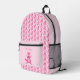 Ce sac à dos impressionnant présente l'image art numérique d'un joli renard rose de petite fille avec un nez noir et des chuchotements, une jolie queue et un ventre rose et même des doigts et des orteils roses. Un design mignon pour célébrer une petite fille. Il y a du texte personnalisé pour que vous puissiez révéler le sexe du bébé ou le personnaliser avec votre propre message.