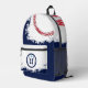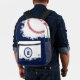 Un sac à dos personnalisé sur le thème du sport. Le design comprend un graphique de baseball avec un numéro de maillot personnalisable sur la poche avant. Grand baseball avec points de roseau et nom affiché audacieusement le long du sommet. Un sac à dos personnalisé amusant pour les amateurs de baseball et de baseball. Conception par Moodthology Papery
