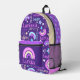 Simple graphic stylized funky boho rainbow backpack of purple, pink, aqua, white and warm light yellow. This is designed for the name and name meaning / definition of Larissa Joyful, bright and kind. Or you can personalize with your own choice of name and name meaning or message in the rainbow. A great custom bag to give as a gift or to take to school or college. Original graphic art Sarah Trett for www.mylittleeden.com and namesense exclusive on Zazzle.
