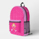 Pneuka rose vif points de fleur et poupées de chiffon filles l'aquarelle d'art sac à dos. Customisez avec le nom de votre choix. Lit actuellement : Kaitlyn sur le devant et votre nom complet et votre classe ou juste un message personnalisé sur le dessus. *Veuillez noter que certains noms ne correspondent pas toujours à la nature de la police. Comprend un joli tableau blanc d'aquarelle d'une poupée de chiffon tenant un coeur pour votre propre nom. Un cadeau parfait pour une fille colorée vibrante qui aime les poupées pour transporter des jouets, des kits de sport ou des articles scolaires. Unique peinture et design d'aquarelle à main par Sarah Trett pour seulement www.mylittleeden.com sur Zazzle.