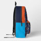 Texte typographique de nom court mi bleu, gris, bleu cyan, orange et blanc sur un sac à dos arrière - plan bleu foncé personnalisé. La couleur de l'Arrière - plan peut être changée si nécessaire en bleu foncé. Un texte graphique personnalisé amusant sac à dos personnalisé, idéal pour, l'école, l'université, le camp scolaire ou les sorties. Personnalisez avec votre propre nom court, lit actuellement Lochie pour l'aide sur la personnalisation et d'autres longueurs de nom s'il vous plaît contactez-moi. © Conception par Sarah Trett pour www.mylittleeden.com