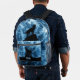 Sac À Dos Imprimé Loup hurlant abstrait bleu noir Monogramme