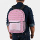 Ce superbe sac à dos est muni d'un motif de jolies fleurs de cerisiers roses, également appelé Sakura et Japon. Elles sont un symbole du printemps et sont idéales pour un mariage de printemps. Ils sont mélangés avec des paires de cerises rouges brillantes mûres. Il y a un cercle rose pâle avec des motifs marbrés blancs qui contient du texte personnalisable pour vous permettre de personnaliser ce design.