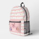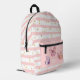 Un motif mignon pour les filles avec des rayures horizontales roses et blanches avec des pois dorés éparpillés en font un choix amusant dans les sacs à dos. Trois beaux papillons dans les tons rose et lavande violet flottent autour de vos initiales monogrammes. Personnalisez le modèle de texte avec vos initiales monographiques ou d'autres textes. Élégant et girly, ce sac à dos polyvalent est prêt pour le retour à l'école ou votre prochaine aventure!