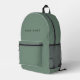 Personalized Trendy organic sage green backpack featuring modern custom text. Add your own photo, illustration or any graphic design element, or leave this elegant and minimal aesthetic. Any font, any color, no minimum.