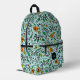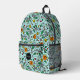 Monogrammed Joyful Backpack for Back to School or Cityscape - Flower Pattern orange Swirl Berry on a turquoise, teal Background Design is hand drawn and shows a seamless repeating floral pattern with green leaves and round orange berries. The main colors in this Pattern are, green, yellow, orange, white