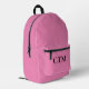 Le sac à dos rose gras contient votre monogramme dans une police noire cool. Ajoutez vos initiales dans la barre latérale.