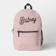 Sac À Dos Imprimé Monogramme et nom rose pâle moderne