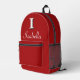 Un sac à dos monogramme personnalisé conçu dans un style élégant et moderne. Cet élégant sac à dos Deep Red est doté d'un "I" initial blanc gras avec une ombre noire et un nom personnalisable en caractères de script noir. Parfait pour ajouter une touche de sophistication et de personnalisation à votre style quotidien. Idéal pour les sorties scolaires, professionnelles ou décontractées, ce sac à dos combine fonctionnalité et design chic qui se démarque.