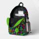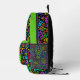 Lancez votre dos à l'école en style avec ce sac à dos vert néon funky. Ce sac à dos personnalisé amusant et élégant présente un design de doodle très lumineux et coloré sur un arrière - plan noir. Un modèle de texte initial monogramme est inclus - utilisez-le pour personnaliser votre sac ou le retirer, l'option est à vous. Ce sac à dos est également une bande de bloc de couleur verte fluorescente en haut de la poche avant, complétant le monogramme. N'hésitez pas à les modifier pour qu'elles correspondent à votre style !