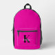Ce sac à dos rose chaud simple et élégant avec votre prénom dans une police de script tendance en blanc et votre première initiale dans une police casquette moderne en noir est parfait pour vous. C'est design, tendance et pourtant très classique. Il sera fabuleux pour l'école, la salle de sport, les sorties, les randonnées, le shopping, le vélo, etc.