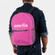 Sac à dos mignon qui comporte votre nom ou vos initiales monogramme dans une police populaire blanche et audacieuse et un arrière - plan rose chaud tendance. Vous pouvez ajuster la taille de la police dans l'outil de conception pour des noms plus courts ou plus longs.
