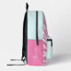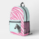 Un motif zèbre amusant avec des rayures roses et blanches et couleur bleu menthe pour compléter sur le dessus du sac et poche avant avec une adorable photo d'un zèbre noir et blanc, ce qui en fait un joli cadeau de retour à l'école pour les filles. Personnalisez votre nom ou votre monogramme sur ce sac en utilisant facilement le modèle texte pour ajouter votre texte à gauche de la conception. Élégant et girly, ce sac est prêt pour l'aventure!