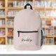 Ce sac à dos personnalisé est doté d'un monogramme et d'un prénom en écriture moderne noir et blanc sur un arrière - plan rose vif tendance.