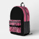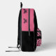 Sacoche à dos imprimé motif léopard noir et rose. Les papillons peuvent être supprimés, le texte peut être customisé. Noir et rose mon combo de couleur préféré!