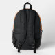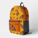 Un sac à dos pour filles avec motif monarque papillon et un endroit pour son nom. Les couleurs sont orange, or et noir. Le nom est en script noir à côté d'une grande image papillon. Parfait pour l'école ou les voyages.