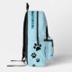 Ce sac à dos amusant est pour tous les Crazy Cat People là-bas! Il y a des groupes de chats comiques à l'avant et des empreintes de pattes qui montent les côtés du sac à dos. Il est dressé contre un arrière - plan bleu clair et toutes les lettres sont dans un bleu royal plus foncé. Le haut du peloton dit "Cela appartient à une personne folle de chat". Personnalisez-le avec votre nom sur la poche avant.