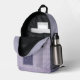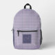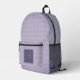 Ce sac à dos est muni d'un patch monogramme en violet à l'avant sur un motif plaid multi-lignes en mauve, lilas et lavande violet, avec des demi-panneaux en violet solide sur le côté.