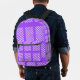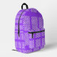 Go back to school in style with this cool purple and white checkered backpack. This backpack features a pattern of checkers and stripes in alternating purple and white , with black details. Original digital artwork by The Gifted Grackle.