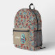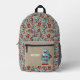 La poche avant de ce sac à dos est prête à être personnalisée avec un nom ou des initiales. Il présente une jolie illustration d'un robot rétro en bleu clair contre un arrière - plan bronzé. Le reste du sac à dos a un motif de robots en rouge et bleu, ainsi que la coordination des noix de hexa contre un arrière - plan de couleur bronzée.