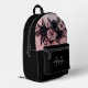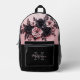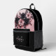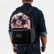 Ce sac à dos de luxe moderne unique pour ses caractéristiques rose vif et noir roses 3D ainsi qu'un nom et un monogramme personnalisés.