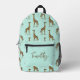 Design branché, ce sac à dos affiche un design d'impression de girafe doré sur un arrière - plan bleu menthe. Parfait pour répondre à vos besoins de retour à l'école, personnalisez le vôtre aujourd'hui! Giraffe Design : https://www.etsy.com/shop/OriginsDigitalCurio