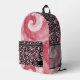 Ce sac à dos super comprend un motif tourbillonnant coloré à la cravate dans des couleurs roses vives. La poche et le dessus du sac à dos ont un motif à cravate fleuri assorti sur le noir. Ajoutez votre monogramme personnalisé dans la poche. C'est un design amusant avec une esthétique rétro pour les hippies qui creusent l'ambiance psychédélique des années 1960 et les années 70 bohèmes. Utilisez le modèle facile à personnaliser.