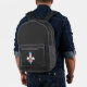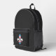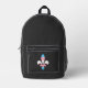 Backpack with fleur-de-lis (fleur-de-lys or lily flower) symbol with rainbow stripes of pink, blue and white from transgender flag; trans pride design