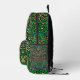 Sac à dos dans un vintage papier peint fleuri William Morris Jacobean motif de tulipes rose corail, marguerites jaunes, violettes bleues, fleurs blanches délicates et feuillage vert jade, sur un arrière - plan noir