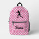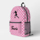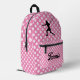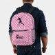Sac à dos rose personnalisé avec imprimé balle de tennis et silhouette féminine d'un professionnel de tennis. Sac à dos couleur personnalisé pour les amateurs de tennis, ventilateur, joueur, coach etc. Design mignon avec nom personnalisé ou monogramme. Idée cadeau d'anniversaire cool pour les enfants retournant à l'école.