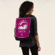 Un sac à dos au design humoristique. Un maïs dormant avec une crinière et une queue fantaisie. Décoré avec un trio d'étoiles. Un arc-en-ciel voûtait au-dessus. Une couronne circulaire composée de nuages, de coeurs et de fleurs pour un parfum girly supplémentaire. La typographie dit Magical AF. Humour et mignon. L'arrière - plan est une couleur cerise rose magenta foncé.