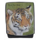 Cette peinture de tigre est très impressionnante sur ce sac à dos, le médium pastel doux met vraiment l'accent sur les rayures de tigres et les détails de fourrure. L'image originale du gros chat fait partie de ma collection de peintures de la faune. Quand j'ai peint cette oeuvre originale d'art tigre, j'ai essayé d'express le pathos et la tristesse que j'ai vus dans les yeux de ces chats sauvages. J'ai intitulé le tableau "J'ai aussi des sentiments" parce que ces créatures merveilleuses sont persécutées dans la nature pour leur fourrure, leurs parties du corps et beaucoup d'autres raisons totalement "inconscientes". peut-être les auteurs de cette cruauté insensible ne possèdent-ils pas de compassion dans leur coeur et ils ne peuvent pas percevoir que les animaux ressentent douleur, peur et angoisse. Les couleurs vibrantes de ce beau tigre se distinguent vraiment sur ce sac à dos. Cette grande peinture de chat fait partie de ma collection d'art de la faune.
