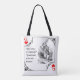 Sac à main Alice Reine de Cœur. © Radenbrea Studios sur Zazzle. L'image est sur le dos et le devant du sac. Comme pour presque tous mes produits, il est personnalisable. Vous pouvez ajouter votre propre citation, nom ou initiales pour le rendre unique si vous le souhaitez. Idéal pour faire les courses ou transporter votre matériel de yoga pour votre séance de sport.