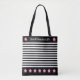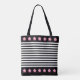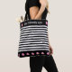 Elégant sac rayé noir & blanc avec de belles fleurs roses et "Eco Friendly Life" texte personnalisé. Diffusons de bonnes vibes !