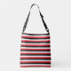 Sac fourre-tout rayé blanc rouge noir. Le design simple est assorti à des vêtements décontractés et élégants. Mode de beaux Sacs fourre-tout femmes. Sacs classiques rayés.