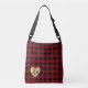 Buffalo plaid, rouge et noir motif vérificateur avec coeur or et monogramme. Déplacez le coeur et le monogramme vers n'importe où sur le sac. Supprimez le coeur et changez les couleurs du monogramme si vous préférez. Grand cadeau pour les demoiselles d'honneur et les fêtes de bachelorette.