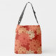 Prise moderne sur un sac floral japonais traditionnel d'impression d'impression de kimono - fleurs stylisées aux nuances du pastel à l'orange profonde sur un arrière - plan profond de mandarine