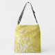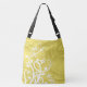Cette fourre-tout présente une illustration numérique de tourbillons ombragés sur un arrière - plan jaune avec des vignes et des fleurs blanches. Cliquez sur personnaliser pour ajouter du texte dans un style de police, une taille et une couleur que vous souhaitez.