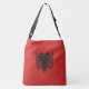 Le drapeau albanais occupe toute la surface imprimable de ce sac carrossable. Le drapeau de l'Albanie est rouge foncé. Il a un aigle double au centre.